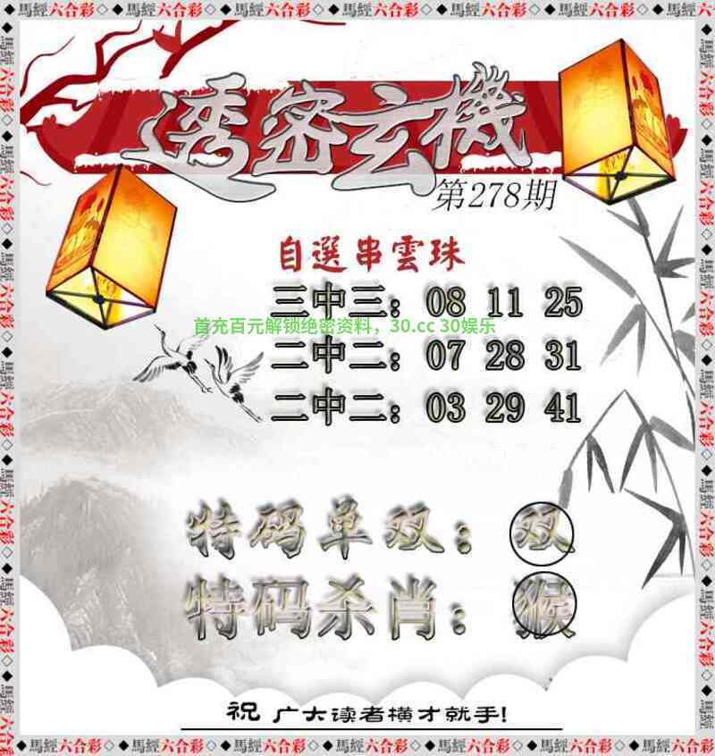 279期平特:【猴】 279期二连:【猴猪】【马牛】 279期三连:【猴猪兔】【马牛龙】 |